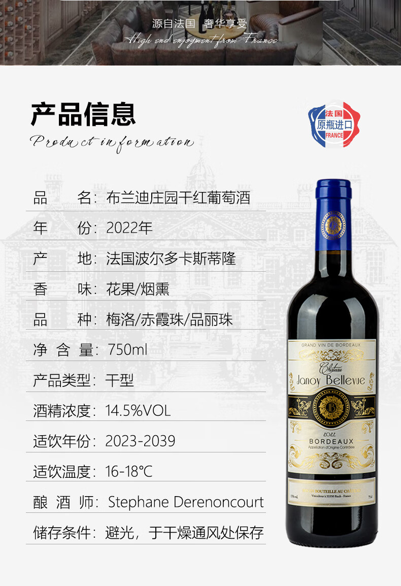 布兰迪庄园2023干红葡萄酒