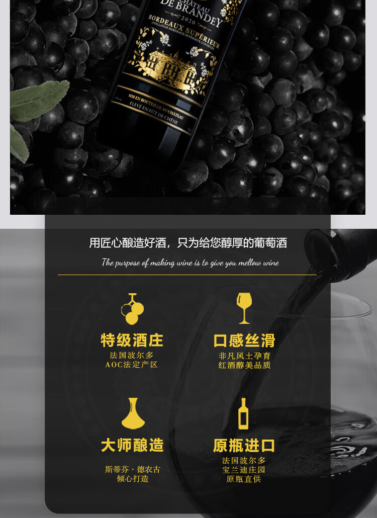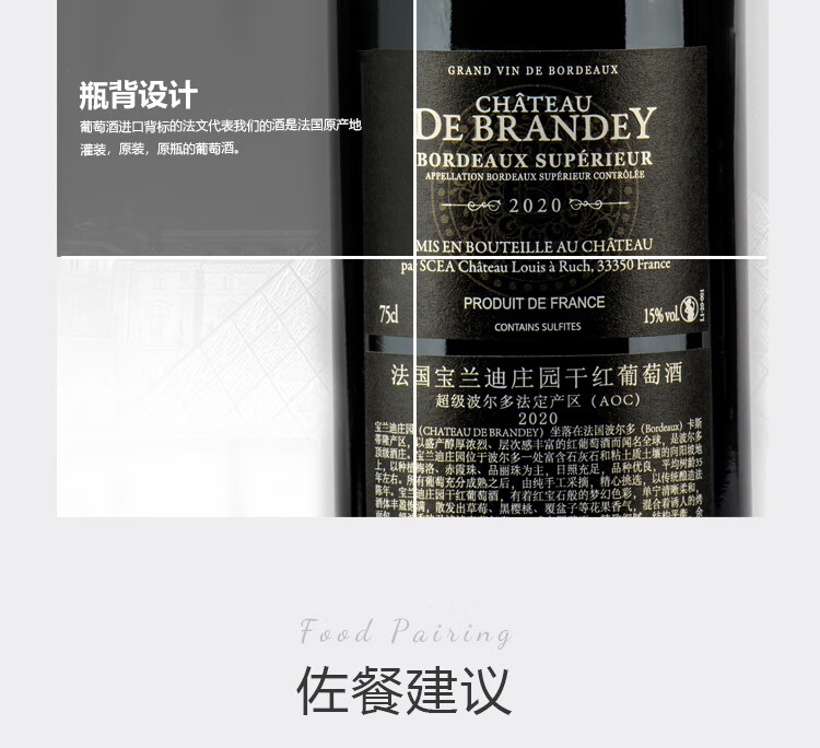 • 路易城堡(CHATEAU LOUIS)【法国进口红酒】2020年份宝兰迪超波干红葡萄酒 波尔多卡斯蒂隆 750ml单支装红酒