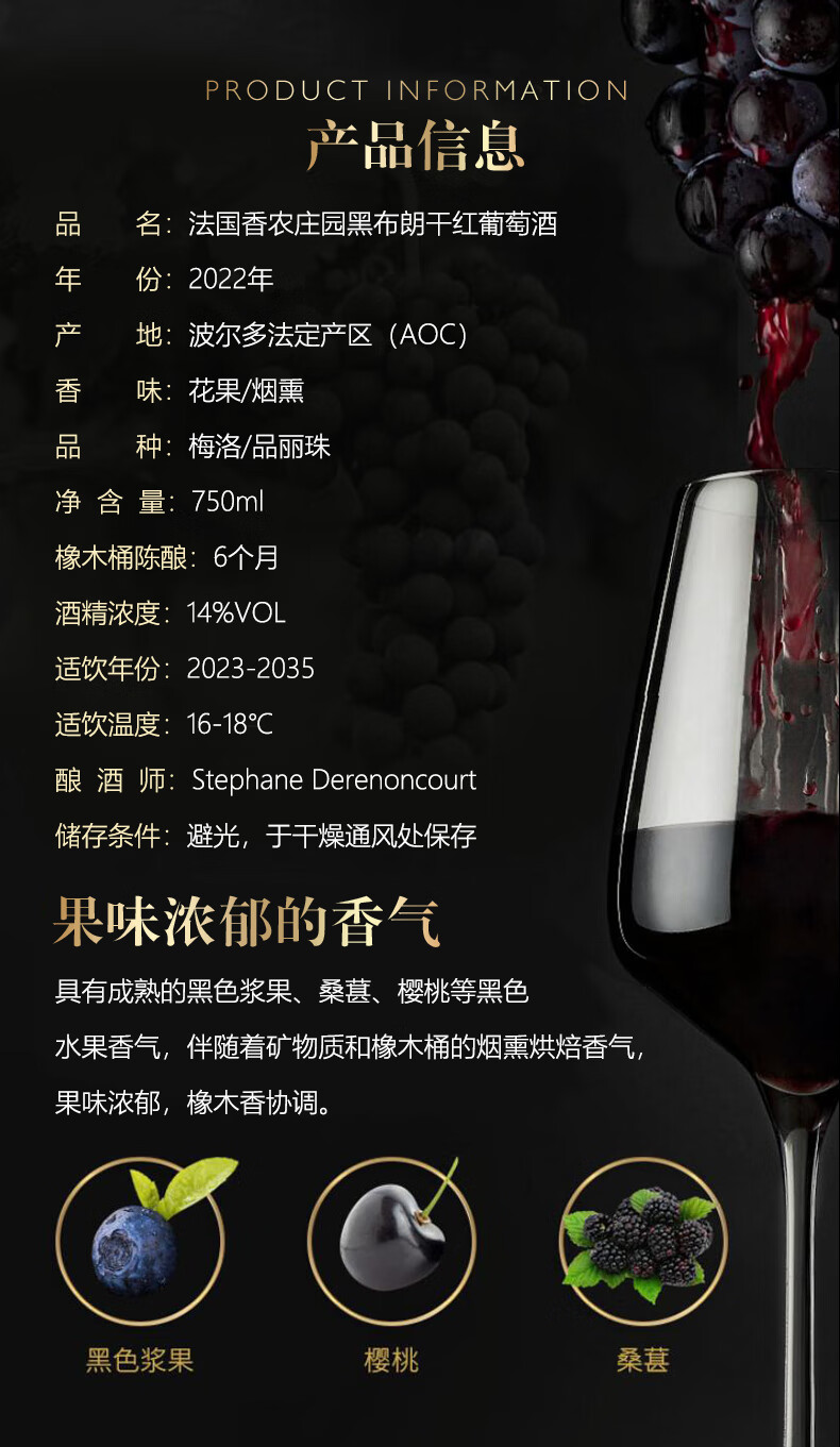 • CHATEAU LOUIS【香农庄园】2022年黑布朗干红葡萄酒 法国波尔多原瓶原装进口 750ml单支装红酒