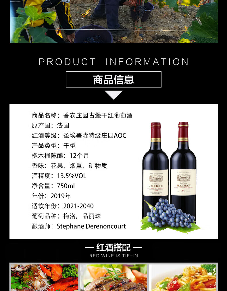 CHATEAU LOUIS2020年 香农庄园黑布朗干红葡萄酒 法国波尔多原瓶原装进口 黑布朗单支装
