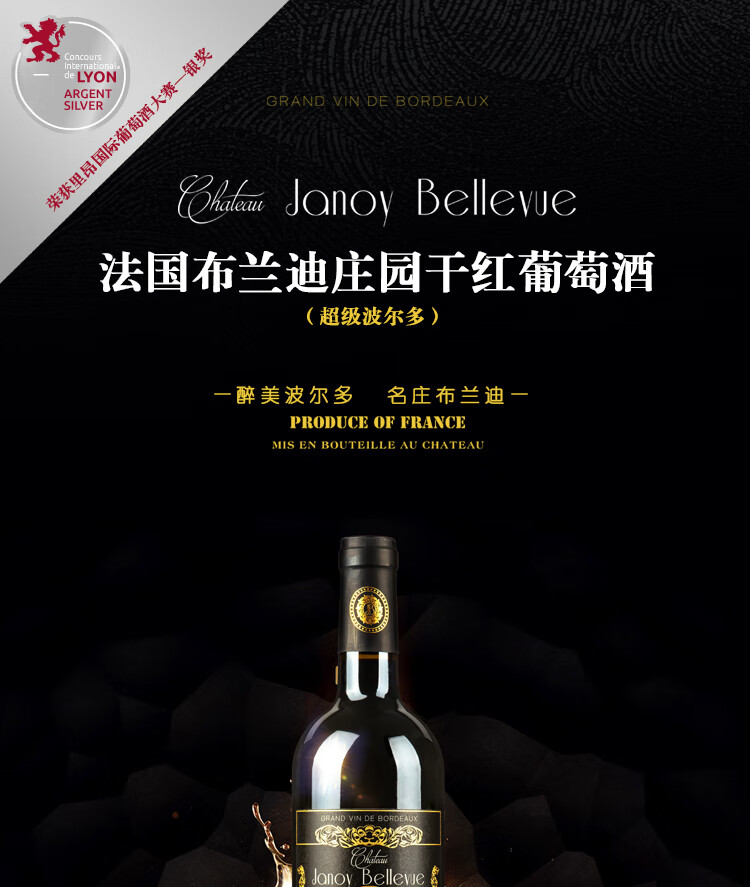 路易城堡(CHATEAU LOUIS)2021布兰迪庄园超波 干红葡萄酒 波尔多卡斯蒂隆【法国进口红酒】 750ml单支装红酒