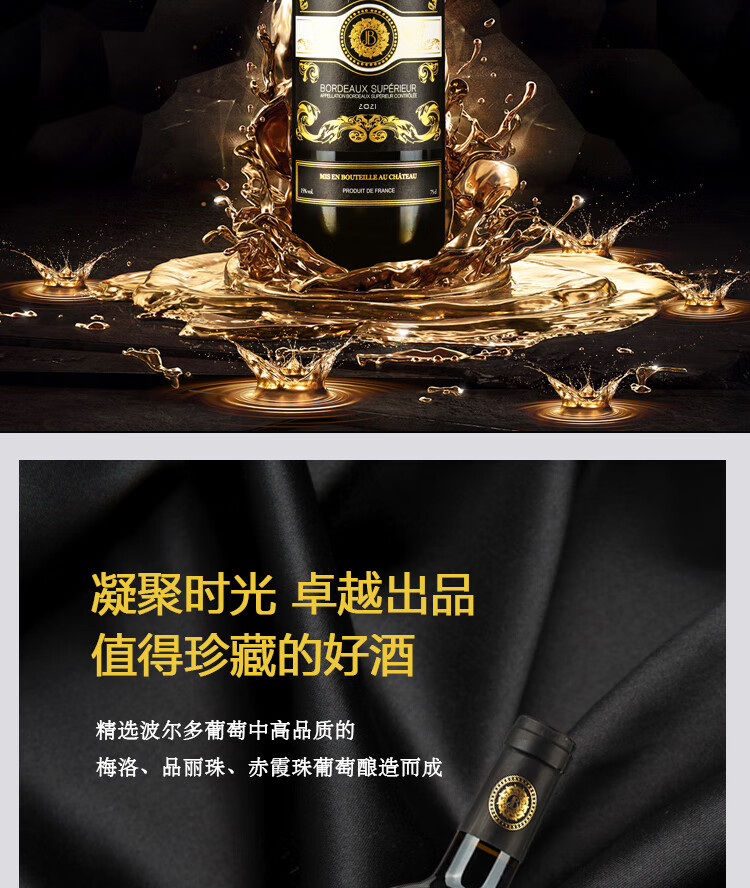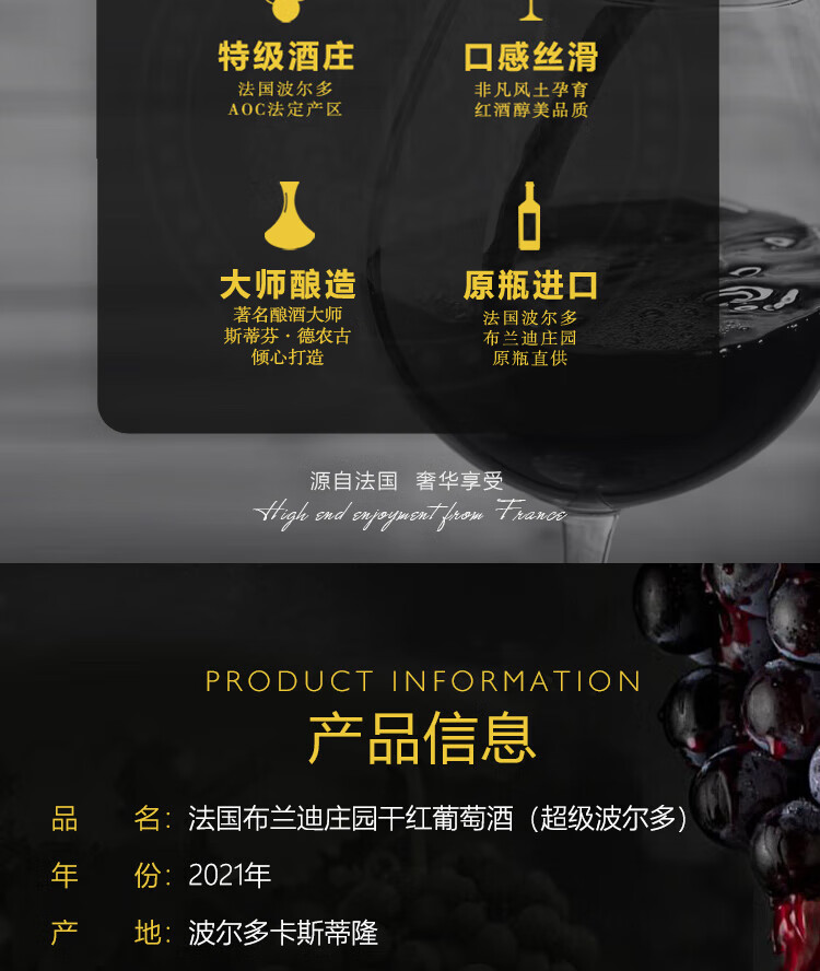 • 路易城堡(CHATEAU LOUIS)2021布兰迪庄园超波 干红葡萄酒 波尔多卡斯蒂隆【法国进口红酒】 750ml单支装红酒